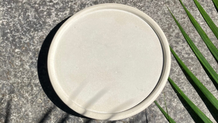 Ao primeiro olhar, o Prato Puro revela sua forma e sua função de modo imediato. Com suas linhas discretas mas eficientemente construídas para desempenhar o papel de delimitar e conter outros objetos, a peça flutua sobre pés de metal – um contraste de brilho contra a opacidade do concreto.