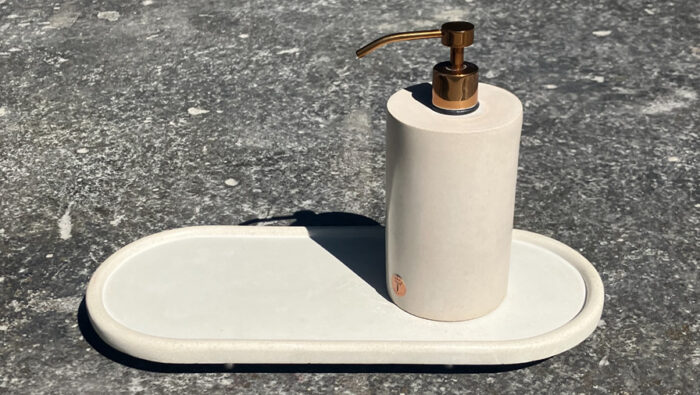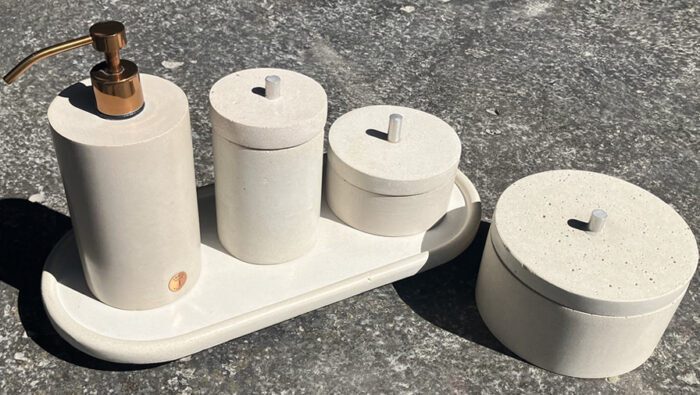 Ao primeiro olhar, a Saboneteira Pura revela sua forma e sua função de modo imediato. O minimalismo de seu volume esbanja discrição e sustenta o valor dos objetos que parecem falar o que são e para que servem. O Conjunto é formado por cinco peças, que são vendidas separadamente: a Saboneteira Pura, a Bandeja Pura, o Prato Puro, os Potes Puros e o Pote Puro Grande com Tampa.